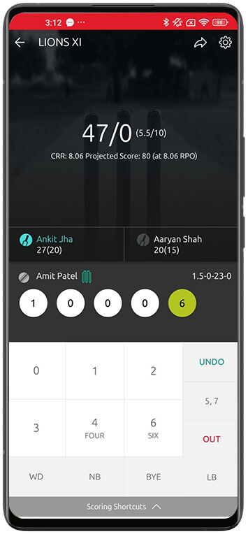 The scoring interface maintains simplicity despite its comprehensive nature. Large buttons handle common scenarios like singles, boundaries, and wickets. Special deliveries, including wides, no-balls, and leg-byes, receive dedicated options.